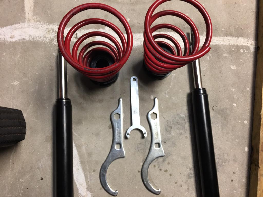 FROM WEBSITE (non-affiliated): The BMW E30 coilovers are height-adjustable with CNC-machined locking perches, which allow you to easily adjust your ride height from 1 to 3 inchesinches below the stock height with the use of our adjustable CNC-machined locking perches and included spanner wrenches. 51mm strut housing!