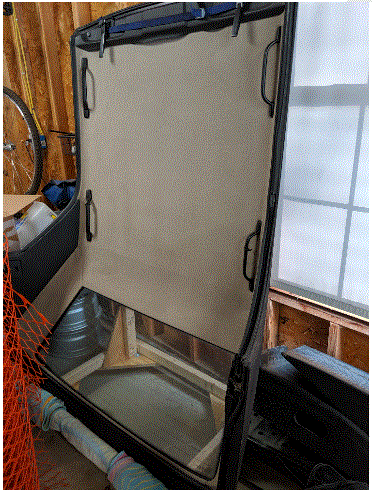 All hardware and handles are in good shape, all doors present. Weatherstripping is in good shape.