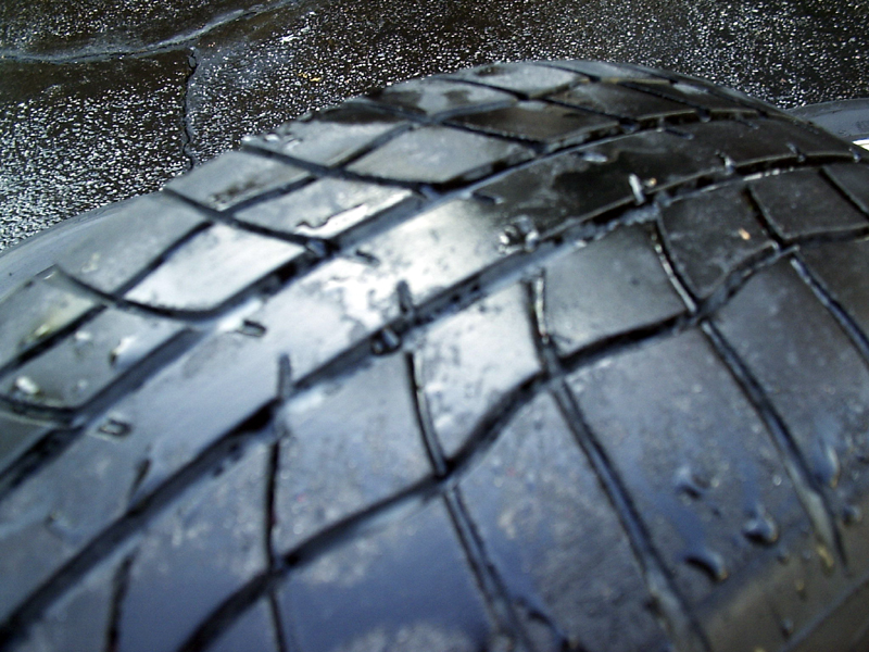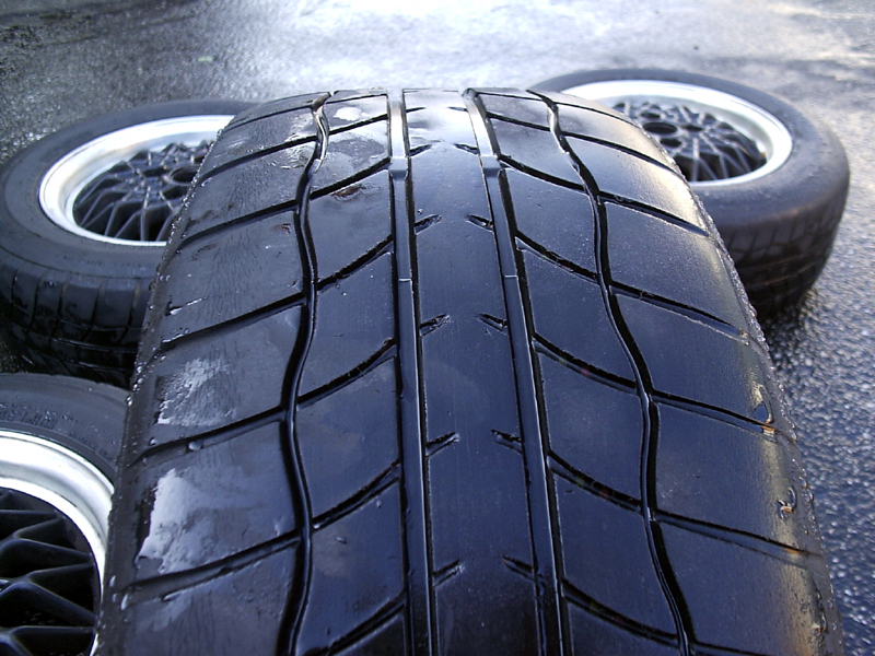Finally got around to taking some close-up pics of the wheels. The tires are probably actually in better condition than I originally represented them to be and do still have some life on them. I tried to take a couple pics of the tread to show this. [The wheels were wiped off for the pic but still aren't all that clean].