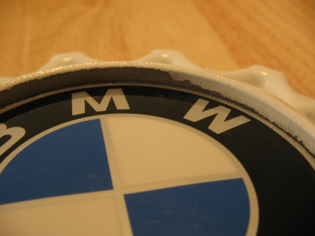 The paint on the inside edge of the emblem recesses has either chipped, or was not painted. This is evident on all four.