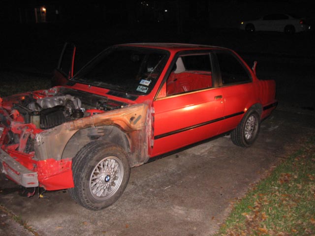 Brillantrot with Tan leather interior...Car was owned by a local enthusiast, Original owner. All maintenance was done by BMW or a BMW certified mechanic. Less then 10k miles ago Motor and Transmission were swapped for new ones from BMW. Car was meticulously maintained. Owner literally bought the car new and cover the interior in seat covers and dash pads. A/C system is completly new from BMW. Car was wrecked on teh front end. Hood, valence, and front bumper are no good. Tell me what you need