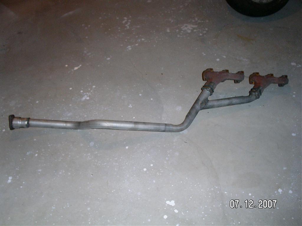 Includes O2 bunghole. it's 2 1/4" pipe that expands to 2 1/2" by the time it gets to the flange. I need to ship this as a whole, not parts. Only because it fits so perfectly within the car that I don't want to remove the headers. I can send more close-up pictures if desired.