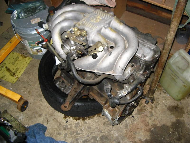next is a complete eta engine. i was told it had around 160k when i bought it and that it ran STRONG before pulled. was going to use the bottom end but im opting for something with 12 more valves and 2.8 liters;)