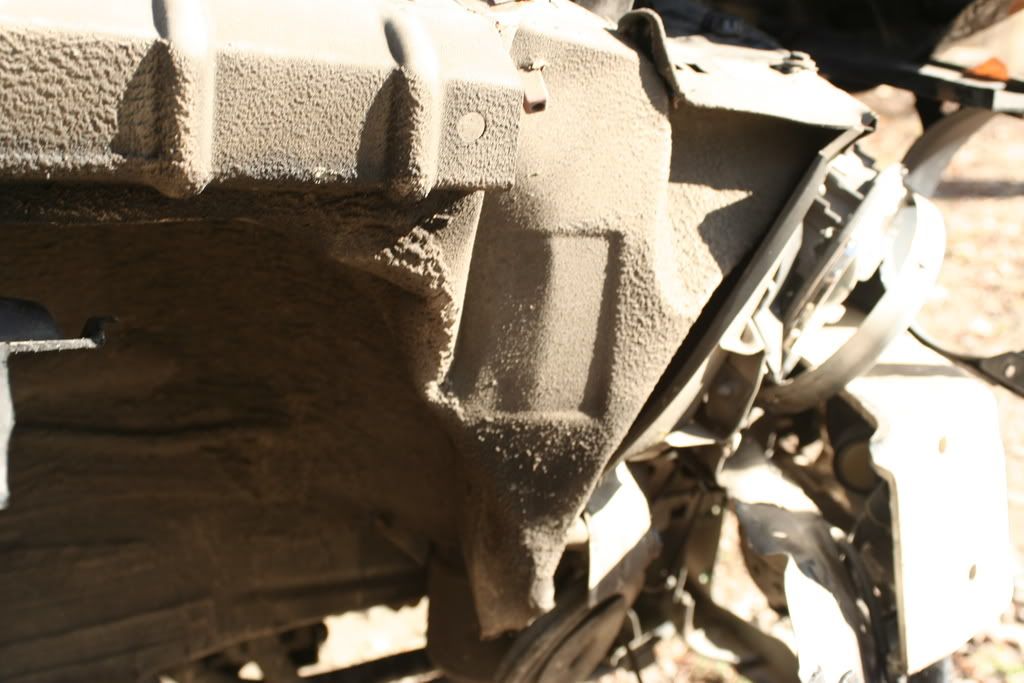 Damage isn't HORRIBLE but it's more then I feel like dealing with. It might be repairable, it may be only good for parts. Drivers door opens fine, passengers door needs a good deal of effort (But it's kinda always been like that, might just need an adjustment, who knows) There is a crease by the strut tower in the fender, and a fair ammount of damage to the very very front corner.