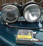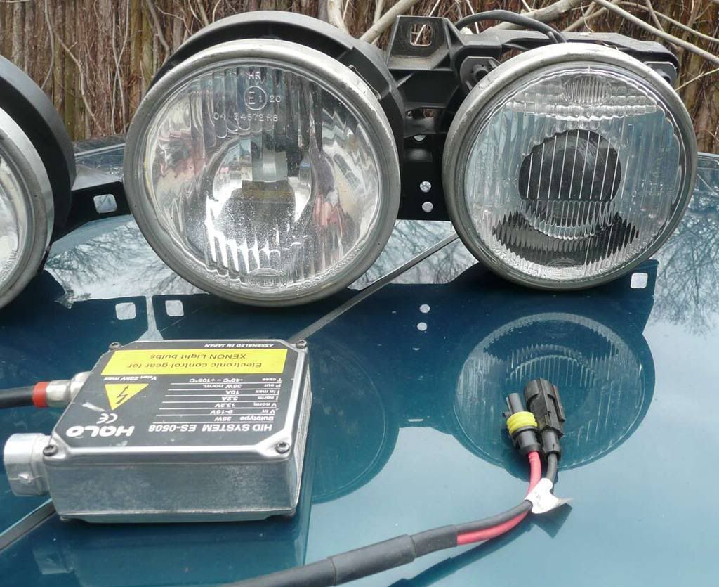 I'm going to run no high beams on my turbo 325is and I'll be hacking up the high beam bucket on the turbo side to put a huge air filter in, so rather than ruin a perfectly good set of smilies I've elected to hack up some US ellips and sell the smilies.