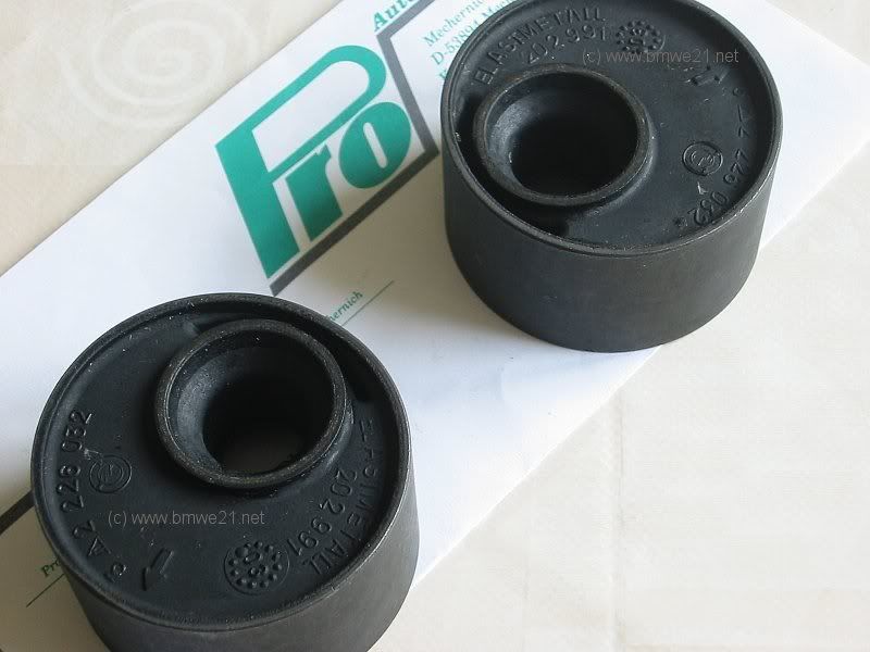 Einstein rode a bike and knew little about auto mechanics. Quantum mechanics is another story. My guess would be Sachs or some generic crap. Last time i checked BMW control arm bushings had a roundel and a part #.