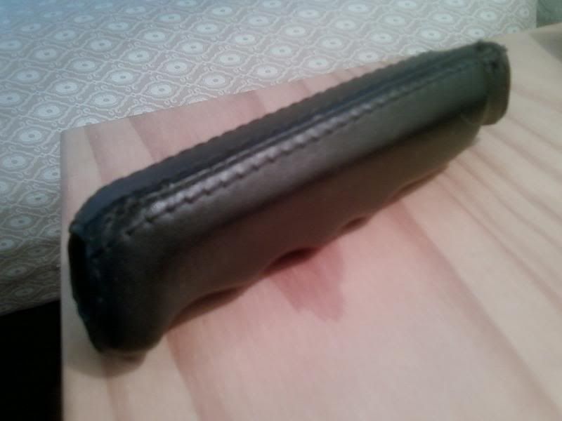 I want this but I have a question. Does the leather handle want to slide up the handle and make the button harder to press like the stock plastic handle does?