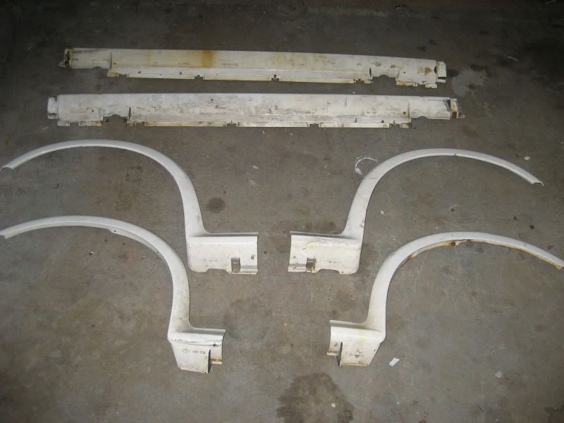 up for sale is a complete set of side skirts and fender flairs from a 4 door 325ix. theyre white, but need a refinishing. the paint is chipped and pealing, there are some not stock screws in the sideskirt part.