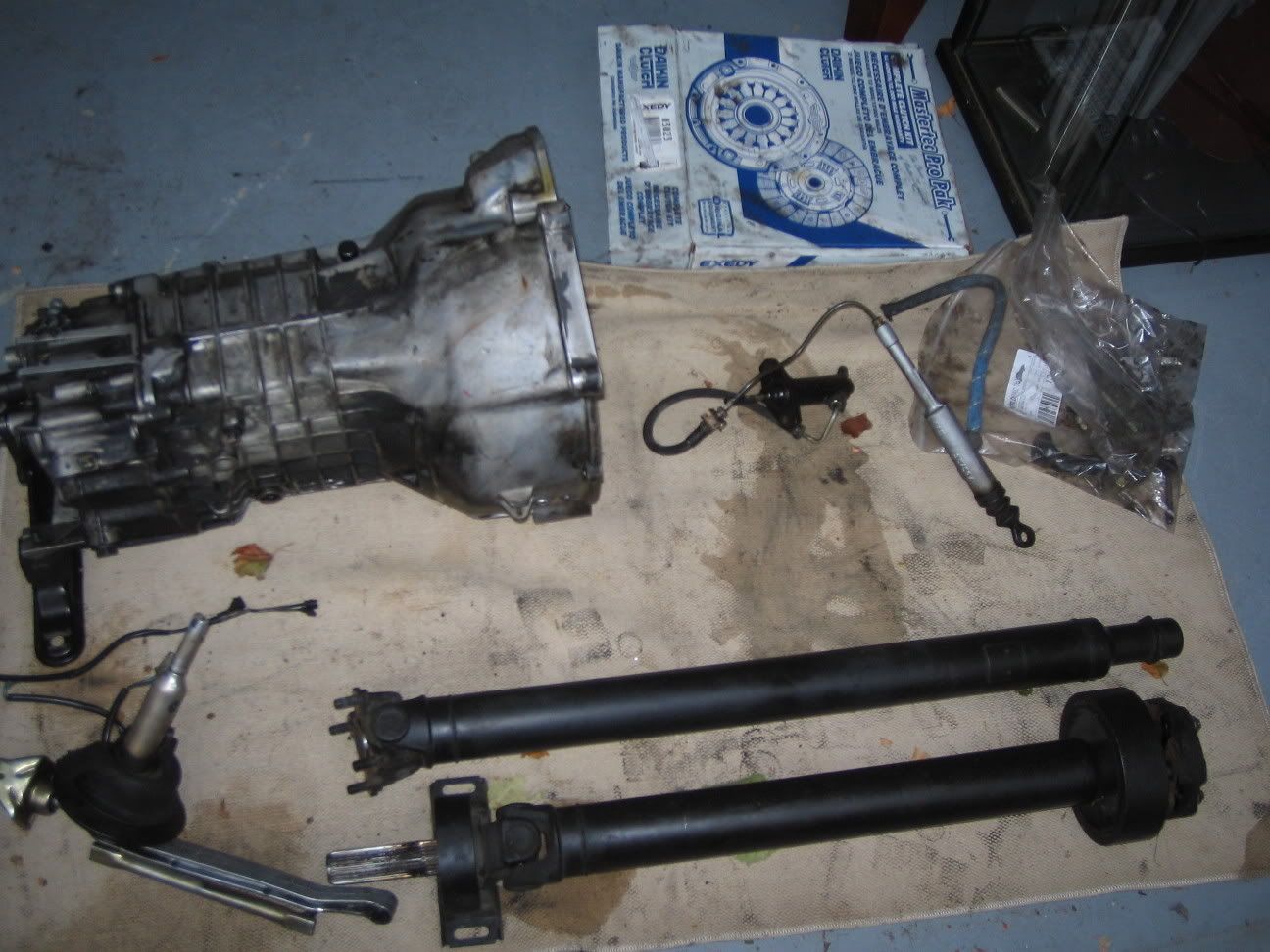 parts included are transmission, driveshaft, shift linkage, pedal assembly, and clutch components. Tranny has about 140k. Clutch has less than 5k miles.