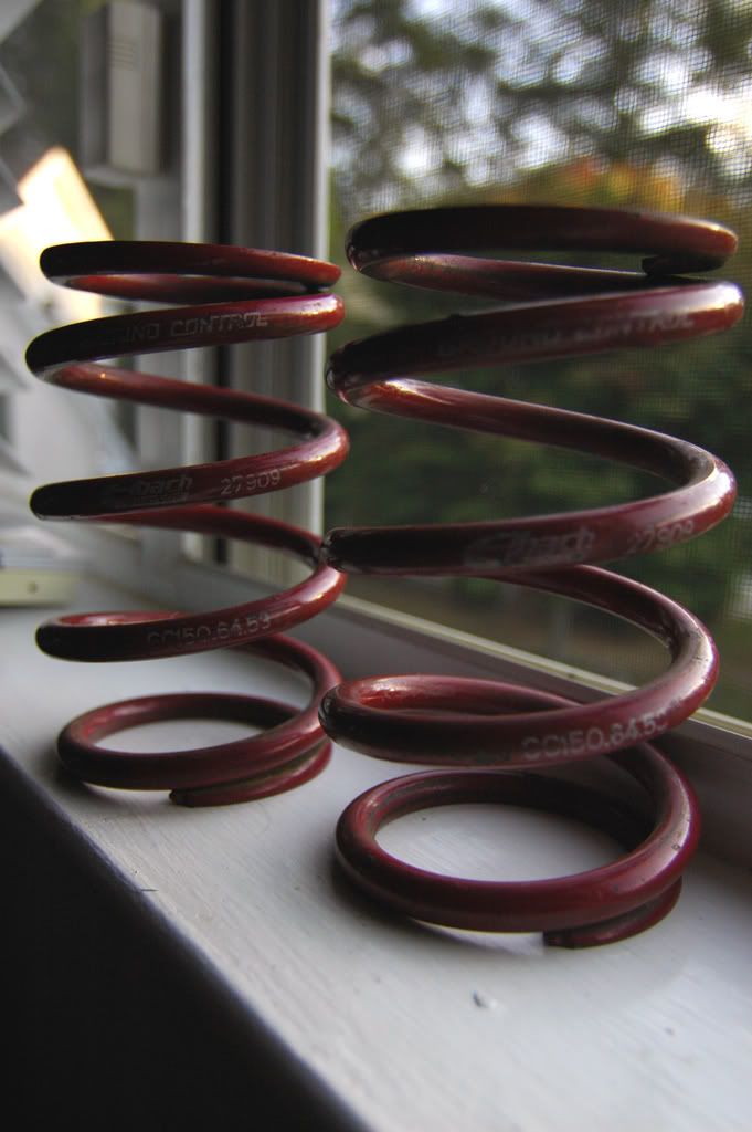 1 Pair of Ground Control Eibach springs. They are 6 inch springs with an ID of 2.5 inches and 300#. They have about 15k on them. They came off the front of my previous E30. Part # 150.64.53
