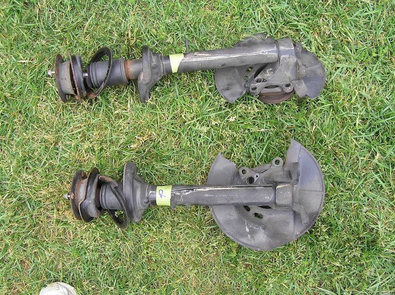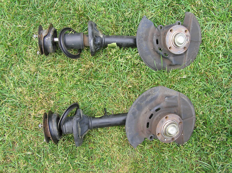 Front strut housings, original struts still in there, includes strut bearing, wheel bearing and disk brake shield, $75 for the pair.