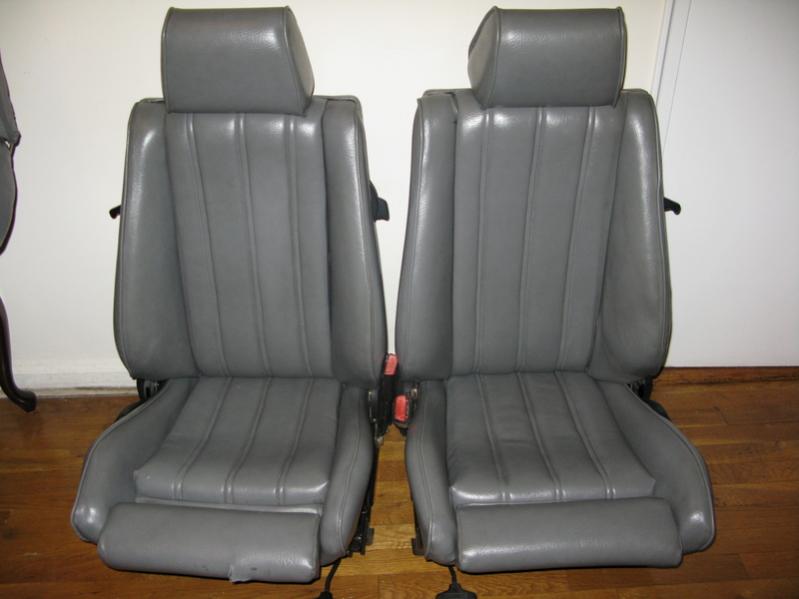 I have a full set of grey sport seats for an E30. I purchased these for my 'is' but have decided to go another way. The front seats have been recovered with vinyl and look very good with only one small tear (see photo)on the front of the leg support of the passenger seat. The rear seat is still leather and is in great condition. $400. I'm located in central Florida for local pick-up. For shipping let me know your location and maybe I can arrange shipping.