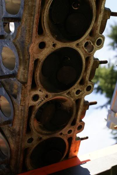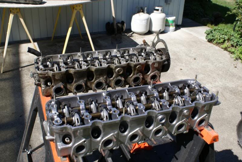 the other which is obviously been machined was going to be placed on to my car. it has been professionally messed with. it was disassembled, hot tanked and clean, and was measured out and checked to be in spec. the deck was milled to make it as flat, straight and perfect mating surface for head gasket. it needs some nic nacs which can be taken off your head thats on your car if you are replacing. but all in all ..its good to go