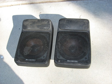 Black rear premium speaker housings with speakers, tested and working. The grills look better than that pic as you can see the paper residue on the bottom of the grills in that pic.