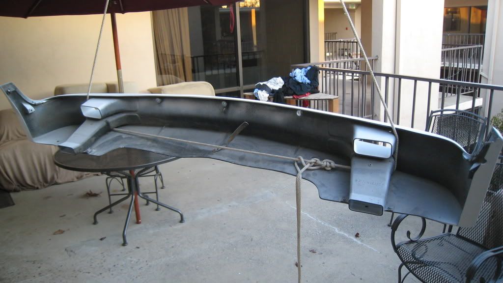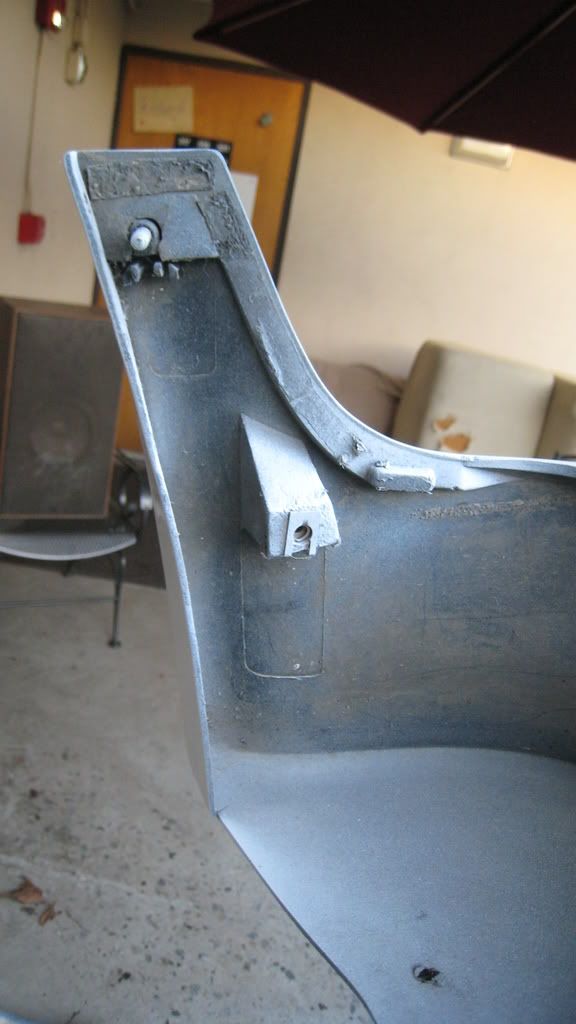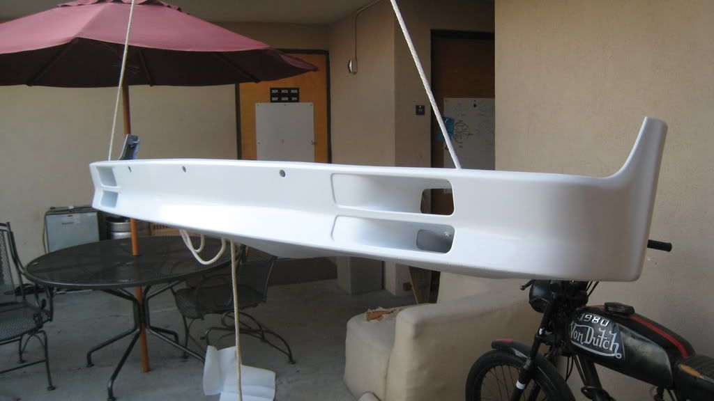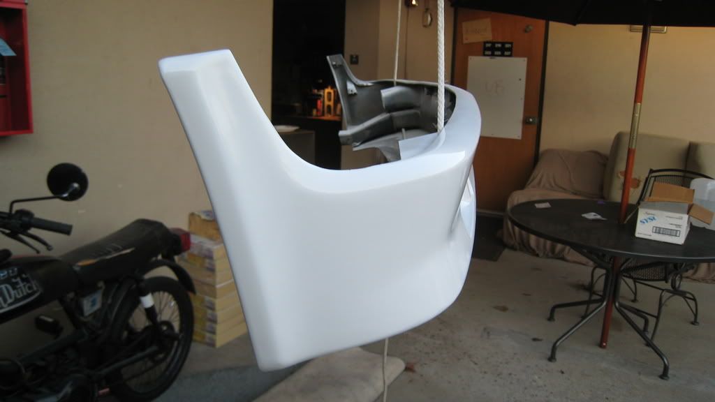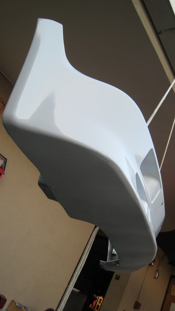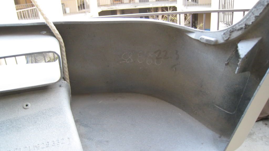 Was originally lazurblau, finish was sanded, primed (two layers) and is currently being painted (5 thin layers so far, wet-sanded between each) Rustoleum Gloss White (which is quite close to Alpine I). One the the three front mounting holes (the left one) is broken off. Probably repairable, but it's not too visible.