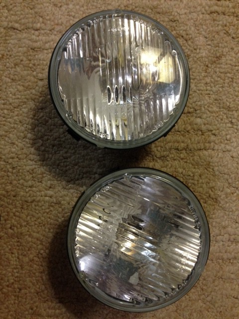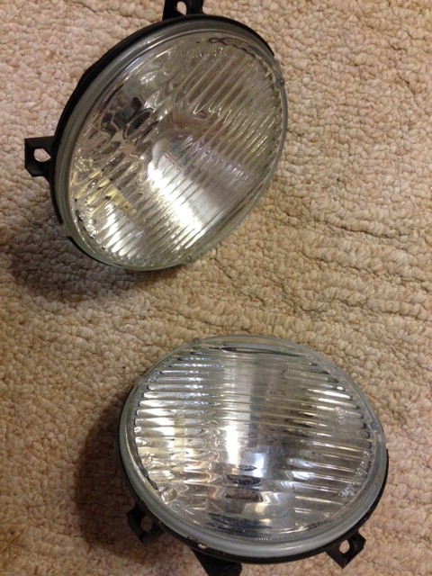 Pair of high beams for US ellipsoids. The glass is minty. The reflectors have a little bit of flaking but not too bad. All the mounting tabs are good. No bulbs.