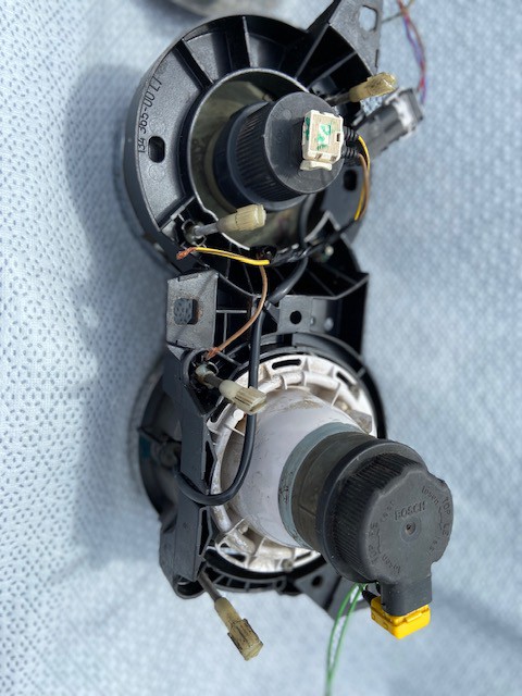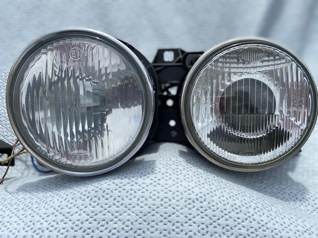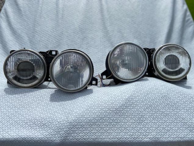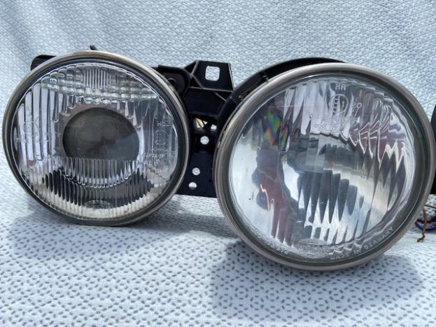 The mounting brackets are intact, both city light bulbs and broken bushings were replaced, the adjusters all turn freely. Also, the lenses are fairly clear with only light pitting.