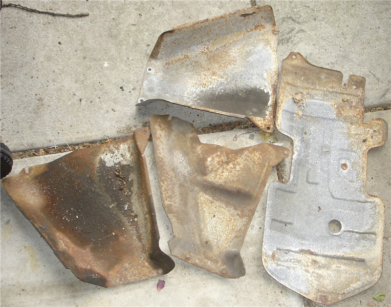 looking for some decent shape rustless (at least cleaner than mine) heat shields for the exhaust. the first one i need goes over the muffler between it and the body and the other is in front of the axle carrier that protects the gas tanks. let me know, thanks.
