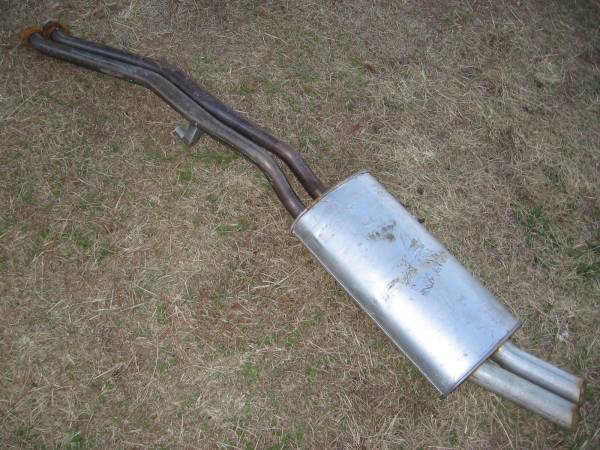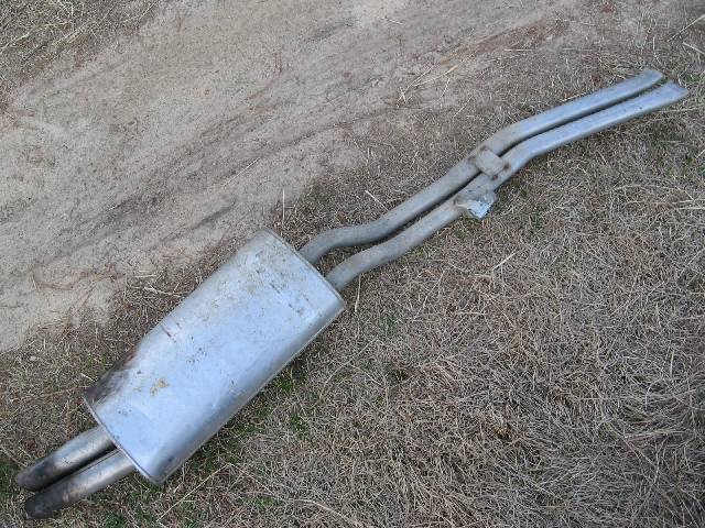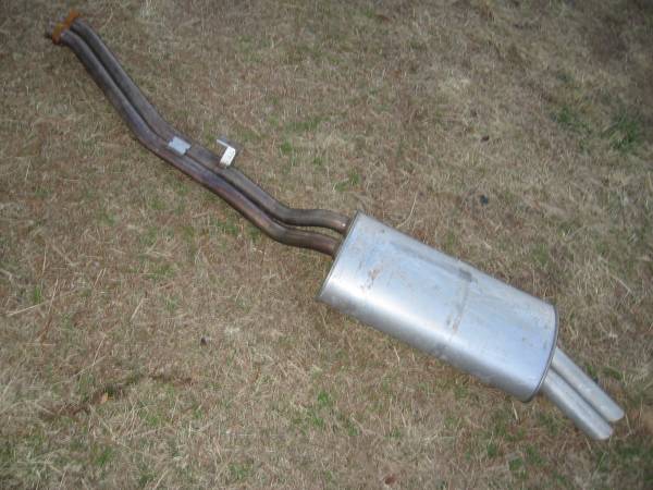 For your viewing pleasure- another selection from my private stock of quality E30 parts.... This one is a Walker replacement E30 "almost" cat-back- as you can see, the flanges are cut off.... This one is in great shape, I think it would be perfect for what you need to have done. Not sure what the black crap is on the tailpipe + part of the muffler, but it comes right off with some carb cleaner.