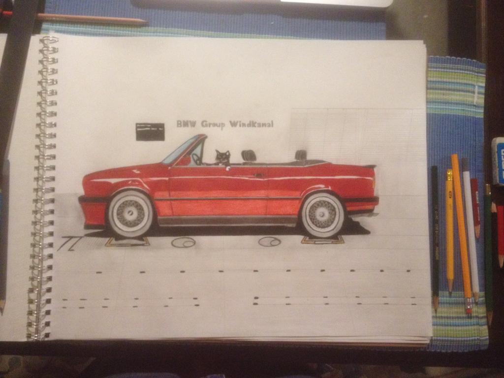 ChrisM had me do a portrait of his cat "spot" driving his e30 cabrio! (Above)