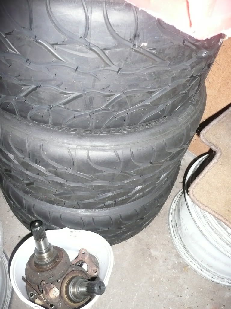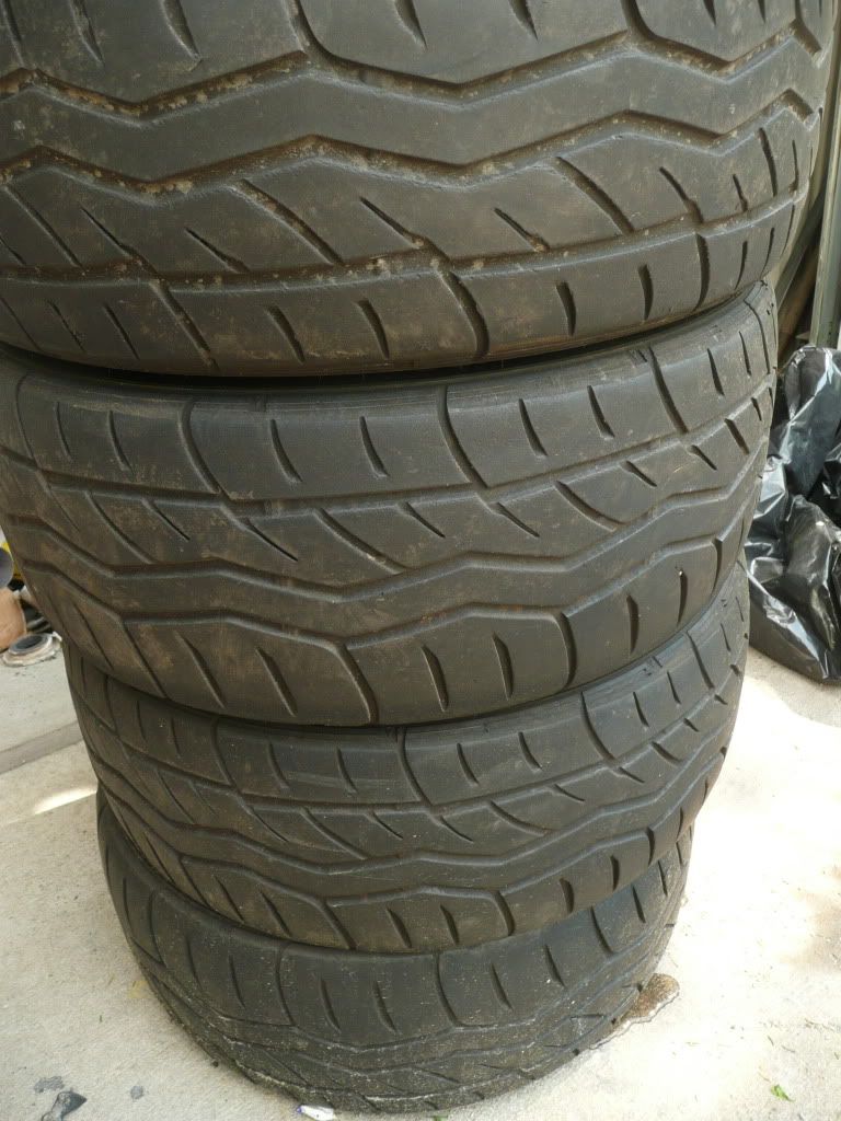 Also have another set of RT615's with more wear. 205/50/15. They're in storage so I'll get better pictures and exact tread measurement as soon as I can, approx 50-60% tread though, and pretty even. Only crappy pic I have: