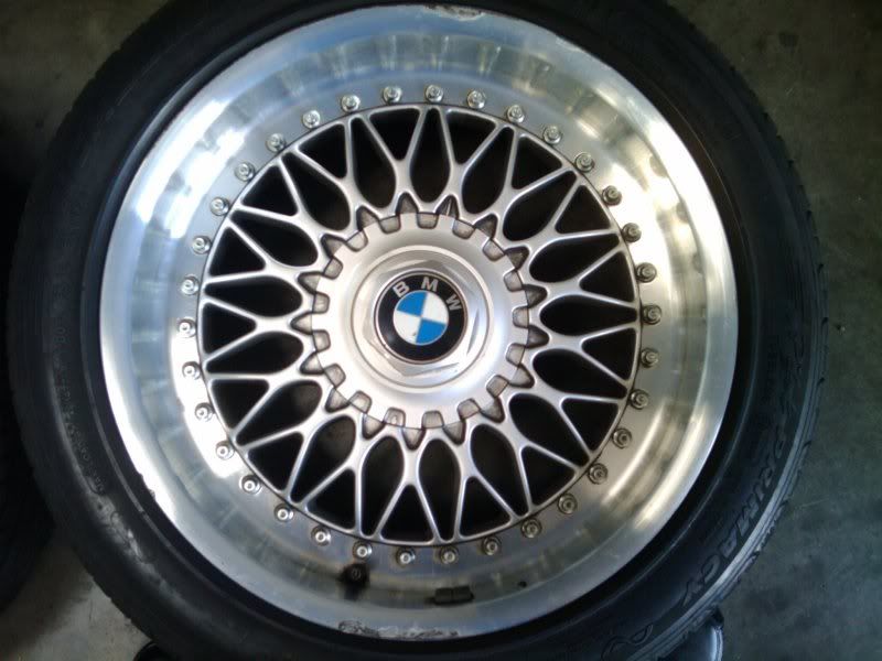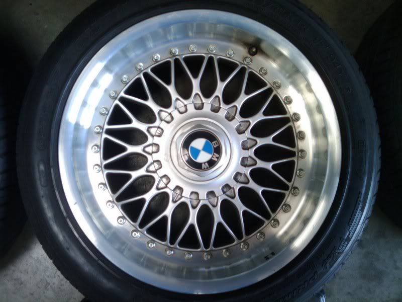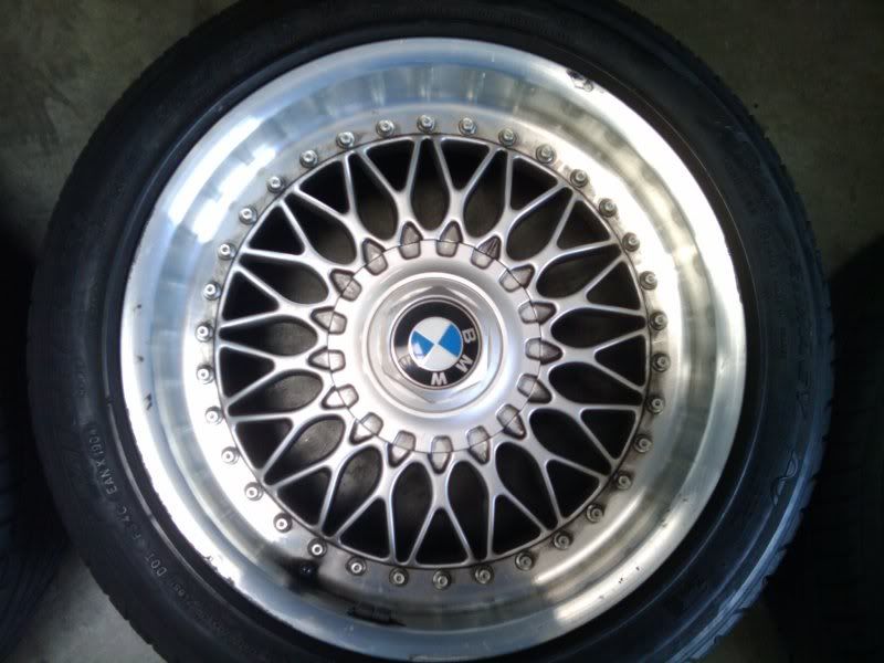 Hey guys, i was gonna put this on my E34 but i sold the car so now I'm selling the wheels. Looking to get $700 obo. Need these gone quick styles. Let me know. I'm not going to remove the tires, they probably need to be balanced before you put them on any car, because some of the weights were removed.