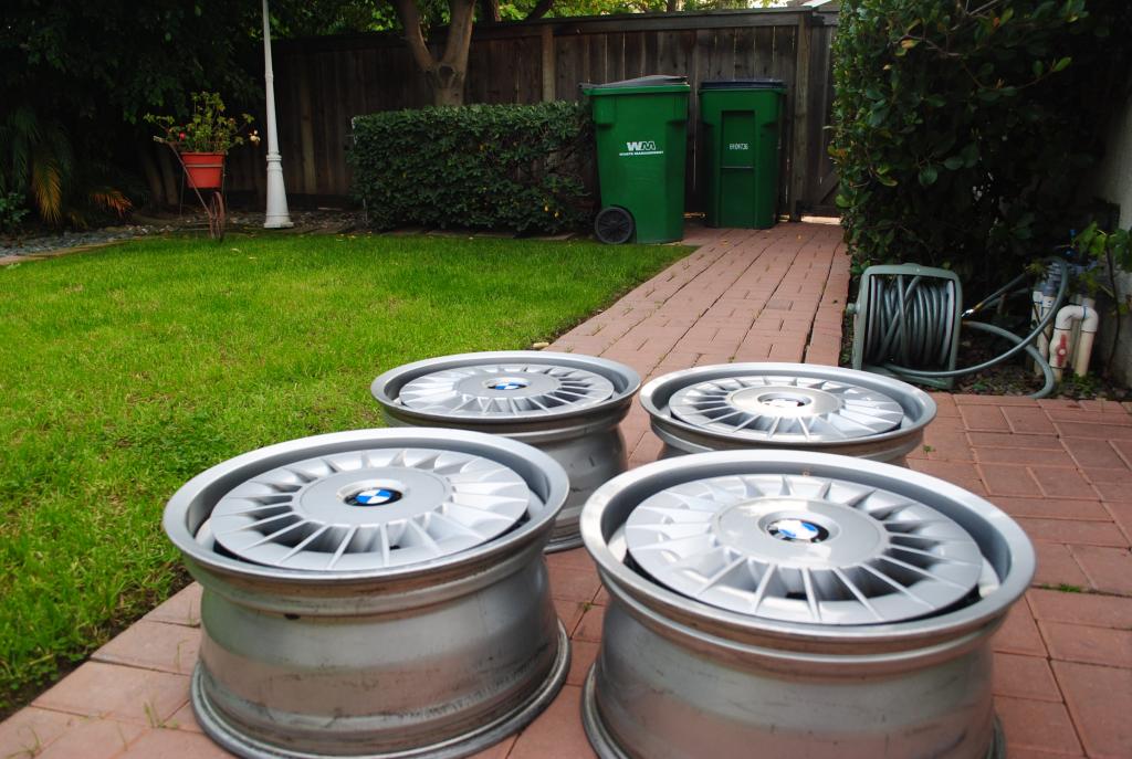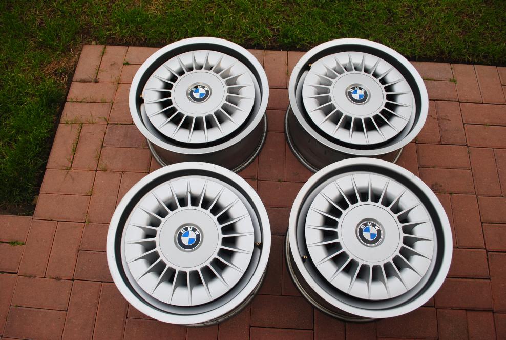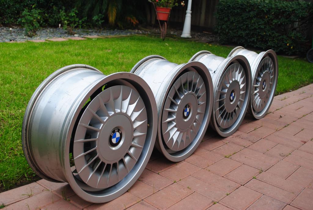 A set of 4 genuine BMW E34 M5 rims for sale. These wheels are in great condition, they are perfectly round and true and have no curb rash. Original silver/black paint is in very good condition. Wheels have minor scratches from use,nothing significant or noticeable unless you look closely. These were never restored or repaired, they are original. So-called "turbine" covers with nearly new BMW emblems are included, covers have few scratches and rock chips. Email me for more photos.