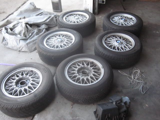 I have 6 basketweeves four with center caps. They have been sitting for a while, but just need to be cleaned. No curb rash but nearly impossible when your running balloons for tires. Tires or no good since they have been sitting for a while. Need to get rid of them so make me an reasonable offer.