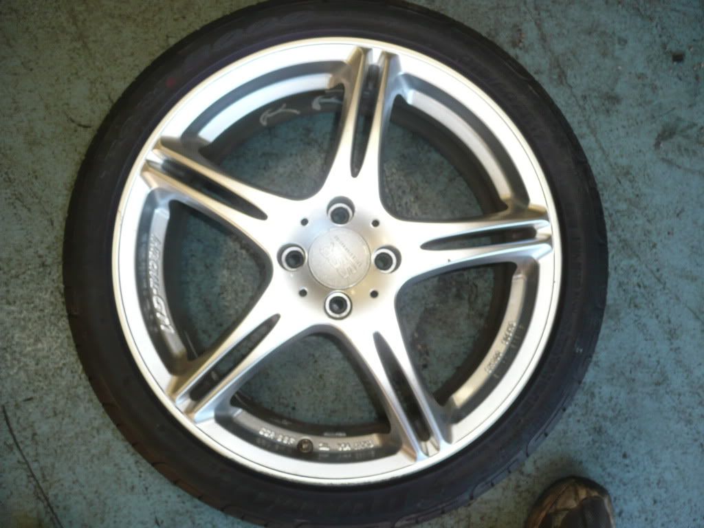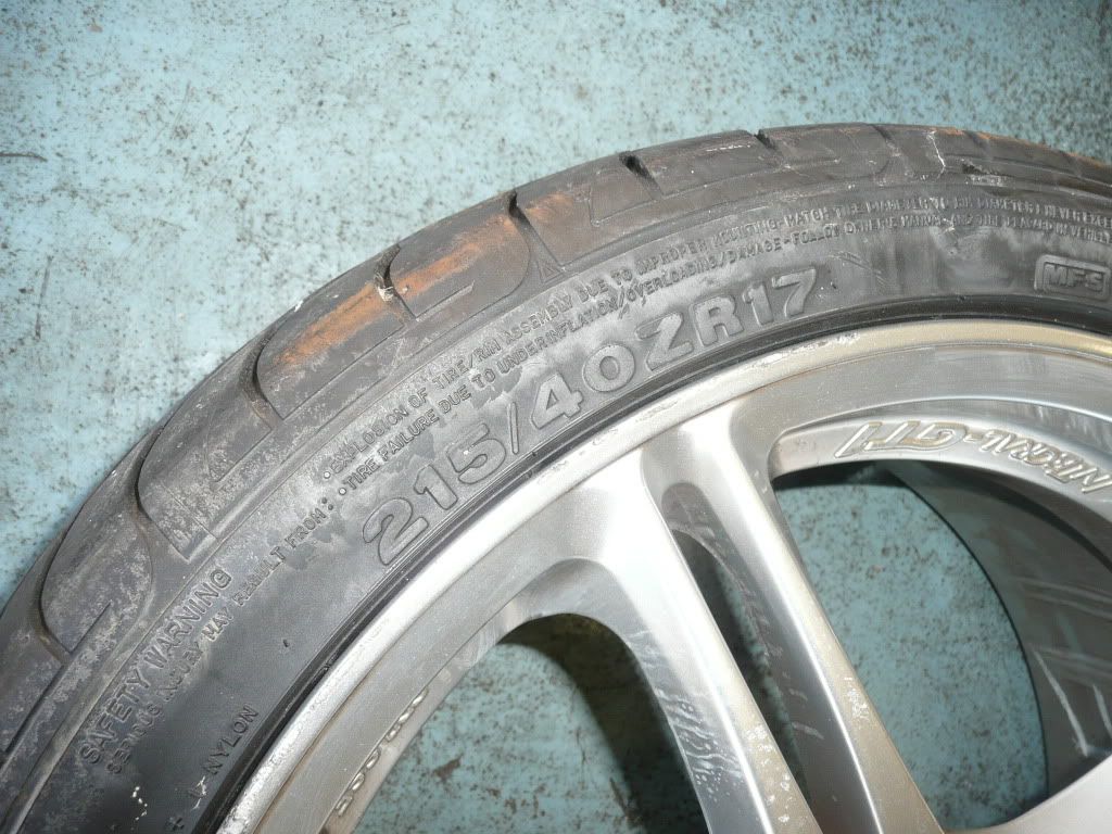 Tires are Dunlop SP Sport 9000 215/40/17 with like new tread. I wouldn't mind keeping these so I'll offer a price with and without tires. Not interested in selling tires separately.