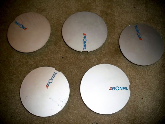 Set of 4 Ronal r8 wheels, 15x6 et 35, with 5 flat caps. currently have 205/50/15 tires on them that need to be replaced (bald). the pictures below try to capture the wheels. not show winners but workable for sure.