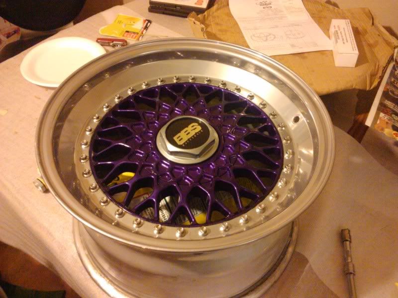 im in the process of finally finishing these up, the holidays are coming up and i wouldnt mind the extra spending cash. please dont clog my thread with any nonsense. these were meticulously put together and taken care of with no expense spared. the wheels have been filled and redrilled from 5x114.3 to 4x100 and the centers have been powdercoated tial purple, the lips and hex nuts have been powdercoated chrome. i have brand new original bbs center caps and some cf bbs center caps for them, im still waiting on the bbs valve stems to come in from germany. the original bbs bolts were refinished and reused. they were assembled correctly with all torque specs and all. asking 2k firm. 602.328.0466