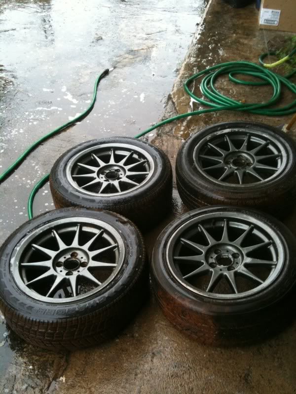 NO Caps, No Bends, small crack but fixed by PO, some chips where the caps go but good condition, Just need to be repainted cause paint is faded and flaking cause previous owner painted them rattle can charcoal grey...
