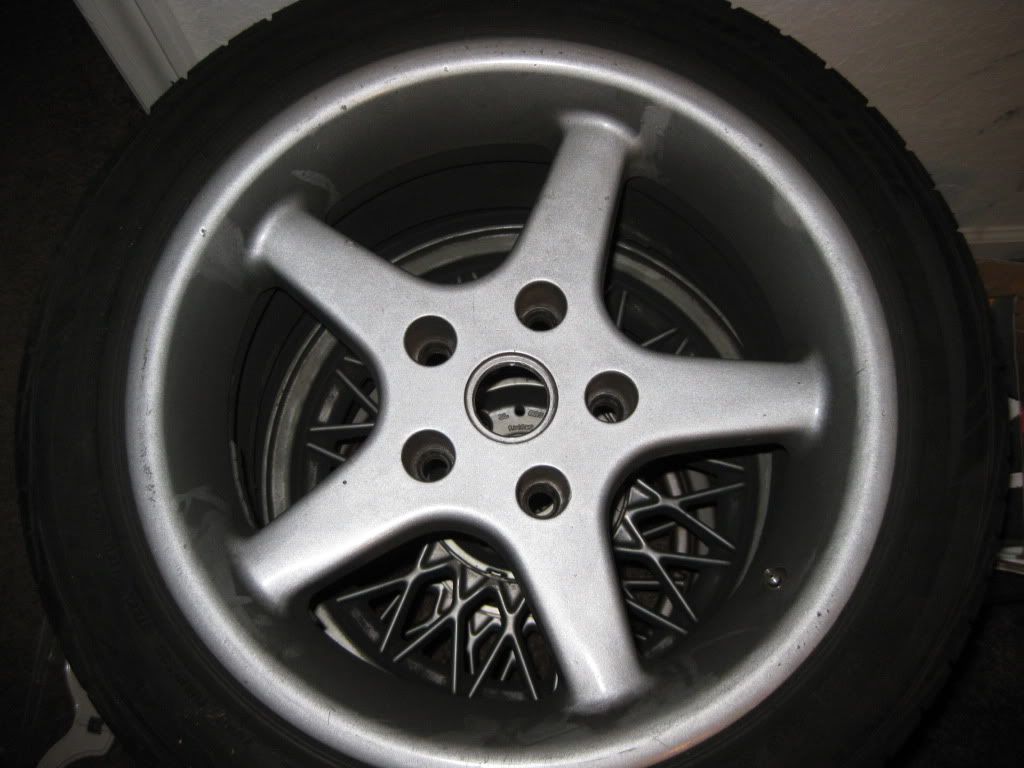 Up first are a set of racing dynamics five spokes, 16x8et15. two have 225 potenzas, two have 215 azenis, all four have good life. 367 obo.