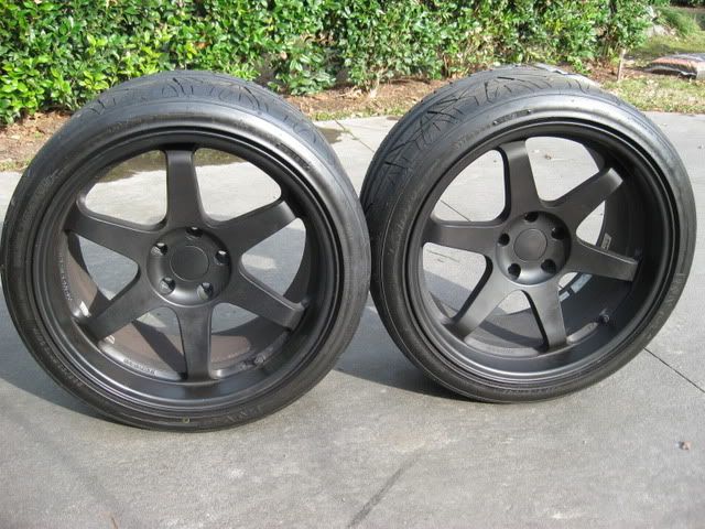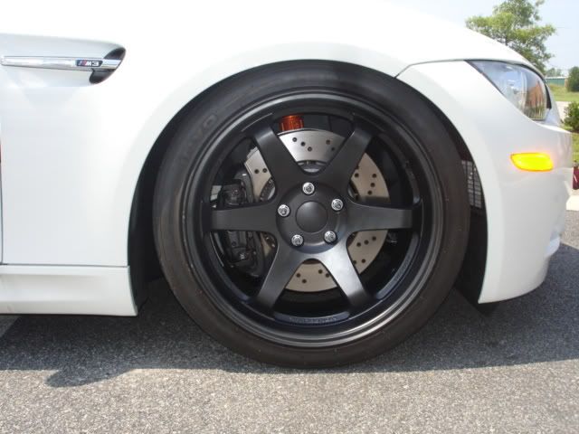 19" Rays Volk TE-37, painted flat black with Nitto INVO tires. No spacers needed to fit on an E90 M3. Please research if these will fit on your application if purchasing for other than an E90 M3.