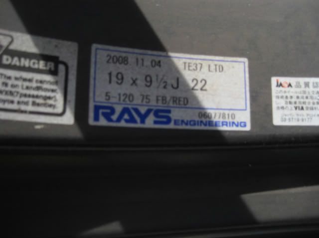 Front wheel pair: 19x9.5 22mm offset 5x120. No curbage but paint is hazed a bit along the rim edge from stacking in the garage. Usually touched up with a black sharpie.