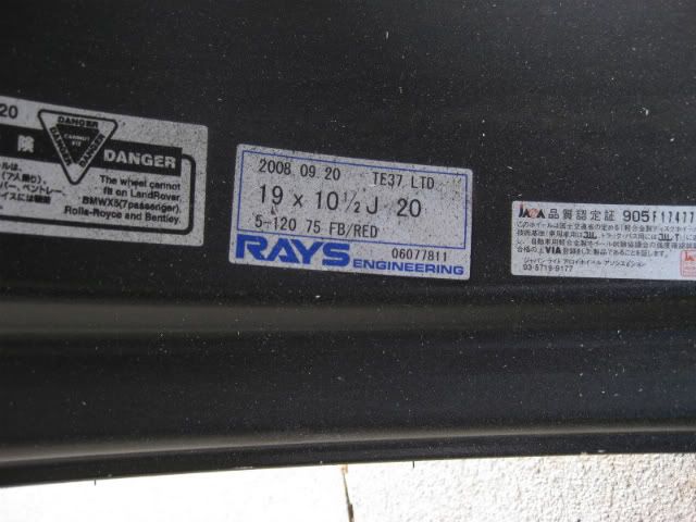 Rear wheel pair: 19x10.5 20mm offset 5x120. No curbage but paint is hazed a bit along the rim edge from stacking in the garage. Usually touched up with a black sharpie.