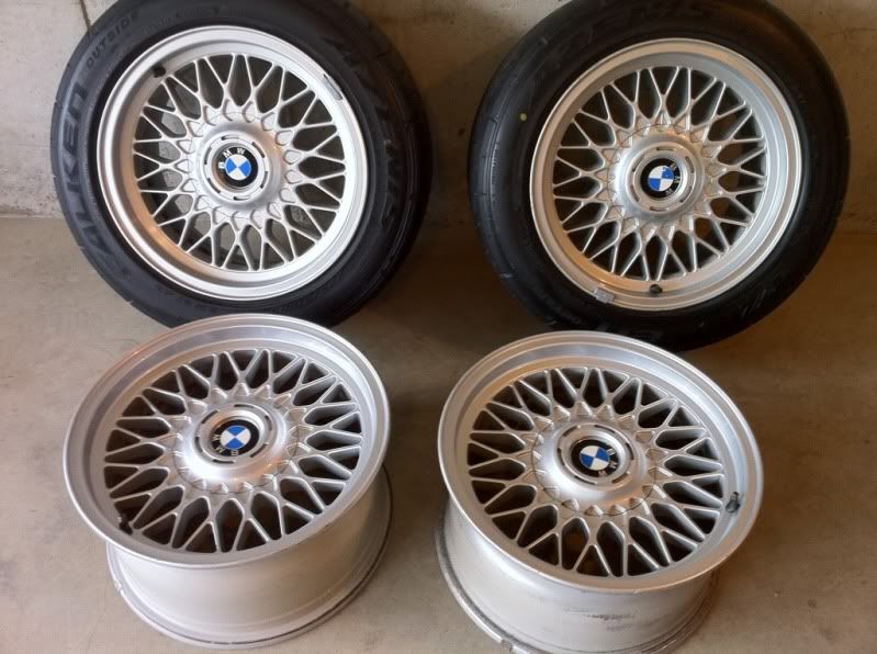 Four nice e38 style 5's. Two new Azenis few hundred miles on them, heat cycled. Two are fundos two are Bbs RZ. No bends all are straight. Size 225/50/16 they fit rear of e30 with rolling the arches.