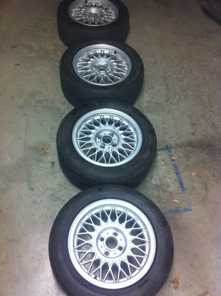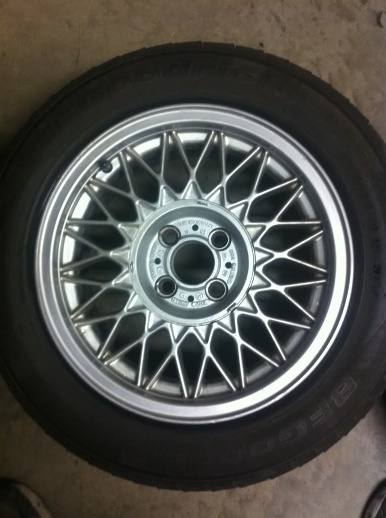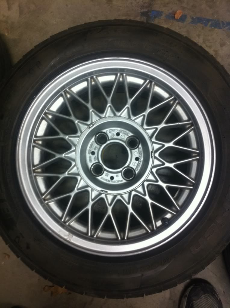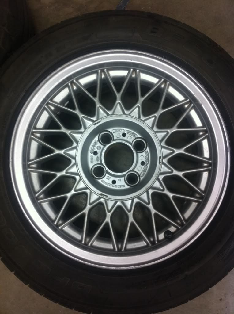 15x7 ET24 BBS Euroweaves. All 4 in great shape with only 2 small locations where the paint is beginning to chip. No bends, cracks, or rash.