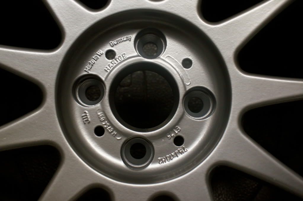 I'm selling a great looking set of 16 x 7.5 Hartge's that have been completely stripped, trued and re powder coated. This set does NOT ACCEPT the Hartge cap due to the age and brittleness of the center cap carrier. I have had them smoothed over so they look way better then a chipped or brittle center that makes it harder to balance the wheel properly. I am asking $1200 and shipping is negotiable.