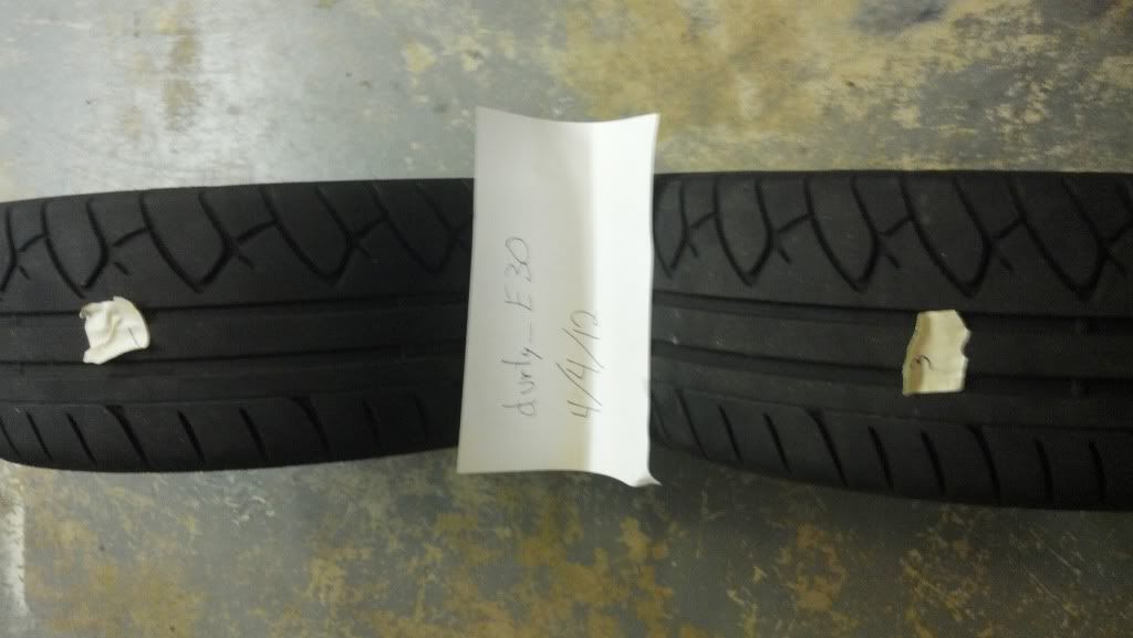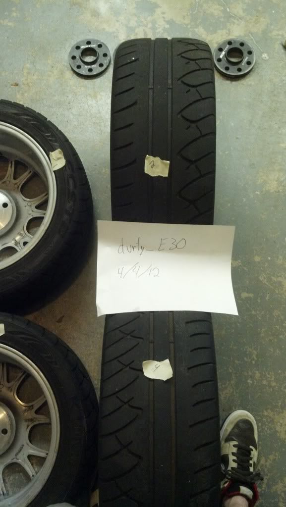 The Kumho KU-36's have about 65% tread on the rear set due to camber wear, and 80-85% tread on the fronts with no camber wear. Only 1 autocross even was on these tires, before I switched to R-comps.