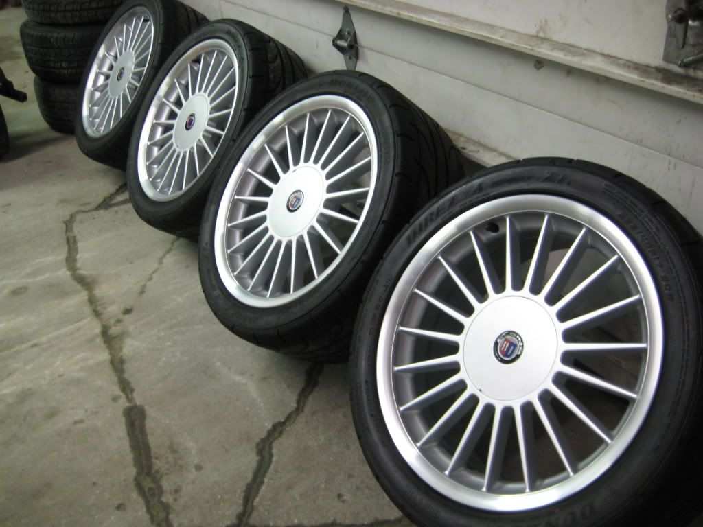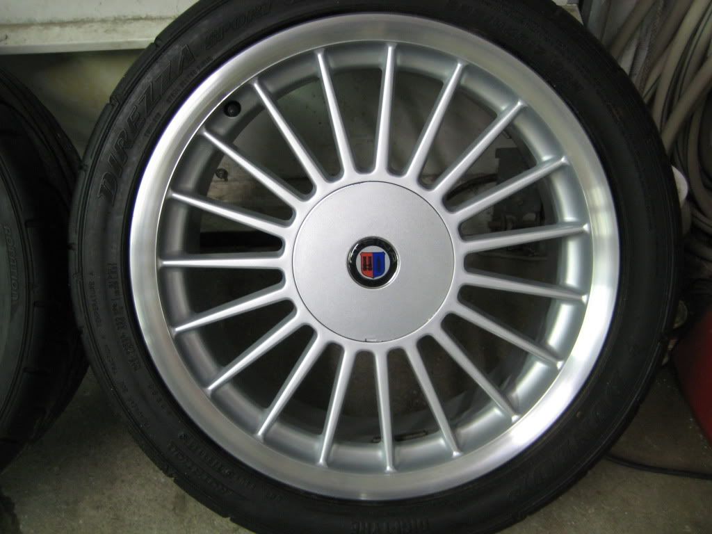 Up for sale is a beautiful set of Alpina Kopi wheels in 17x7.5, 5X120, ET35 sizing. They are in excellent condition and show almost no wear. The wheels are in near perfect condition with the only imperfections being 2 tiny scratches (1 of which was present when I opened the box brand new, both are pictured below). These wheels have the optional polished lip (a $50 option) and have been kept in superb condition. They were thoroughly cleaned spoke-by-spoke every Saturday to be kept in tip-top shape. The wheels have a set of Dunlop Direzza Star Spec Tires mounted and balanced in 235/40 R17 size. I used this set of wheels on my E30 with E30 M3 5-lug conversion and the fitment was spot on with no spacers, rubbing, or fender rolling. These were originally sold as E36 / E46 / Z3 fitment so I can't guarantee any fitments, but they should fit those cars without problems. These wheels and tires were in use for under 5,000 miles and it shows. I paid $1,000+shipping for the wheels + $50 for the polished lips + $675+shipping for the Dunlops + $80 for mounting and balancing. So all said and done, I've got a little over $1,800 into these wheels and tires. Price for the set is $1,250, I will ship these anywhere in the continental USA at the buyer's expense or they can be picked up in Salem, NH.