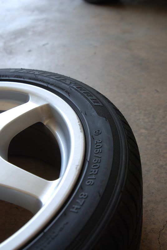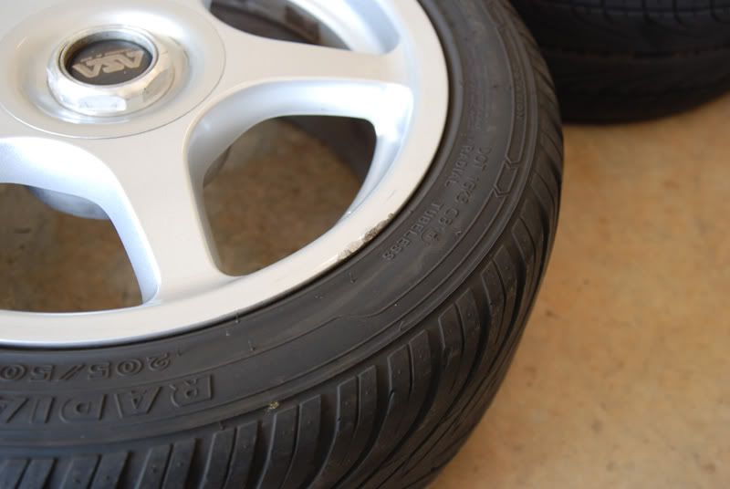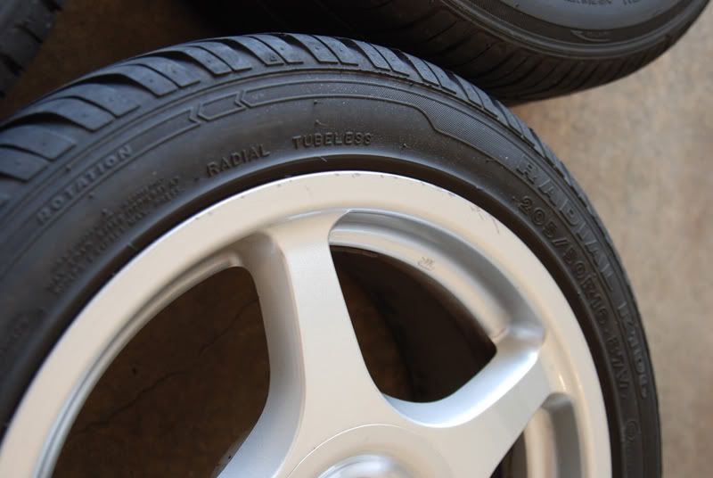 They have tires on them currently, although I'd probably prefer to ship them without tires to keep shipping costs down. The tires do have some workable tread ~40-50% on average; the rears having less and more significant camber wear. One tire has a nail/screw but is not losing air. All tires are 205/50/16. Again, I'd prefer to sell without the tires, but if you really want them, we can work something out.