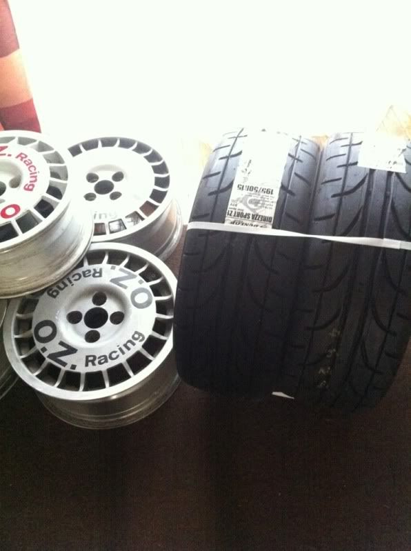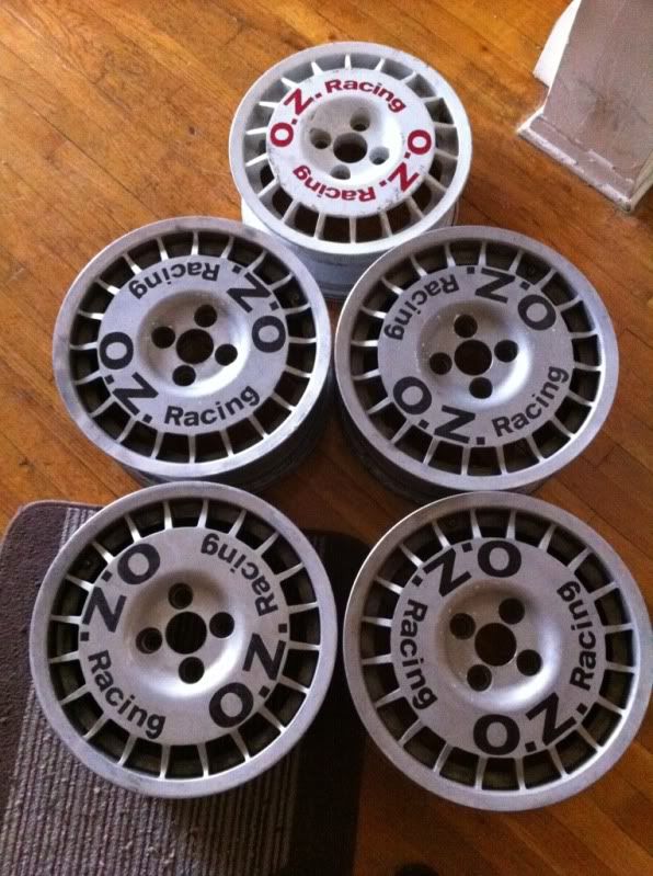 up for sale is a set of old school OZ Rally wheels. 4 of them are 15x6.5 et40 with 195/50 Dunlop Star Specs. the tires have around 200 miles with no uneven wear. the spare is a 14x6 et41. they could use a refinish, but it didnt bother me one bit. offing these as im getting rid of the car theyre on.