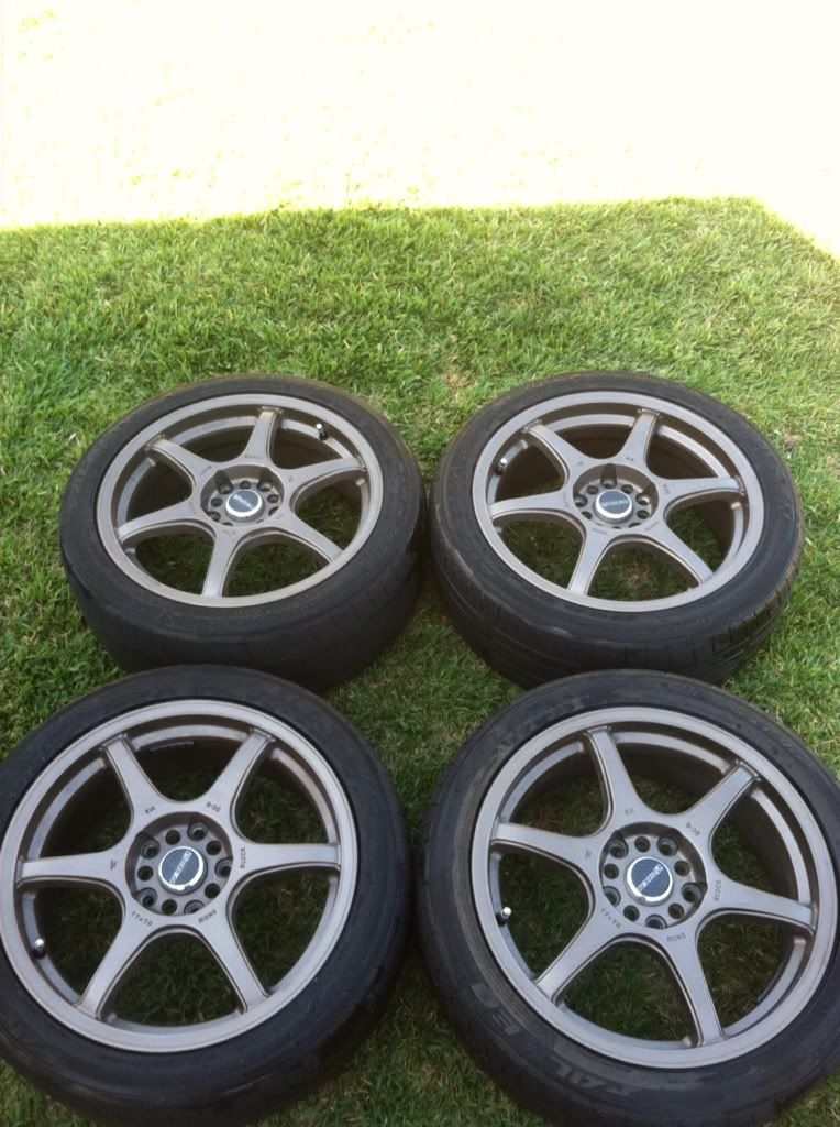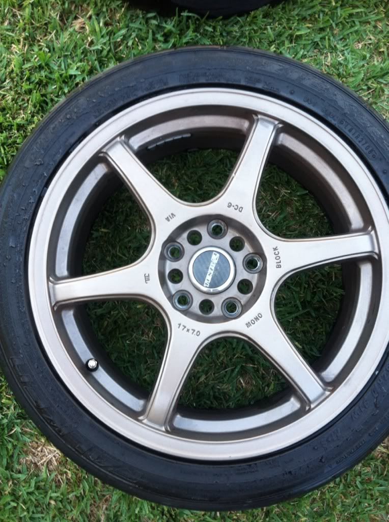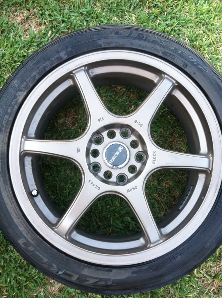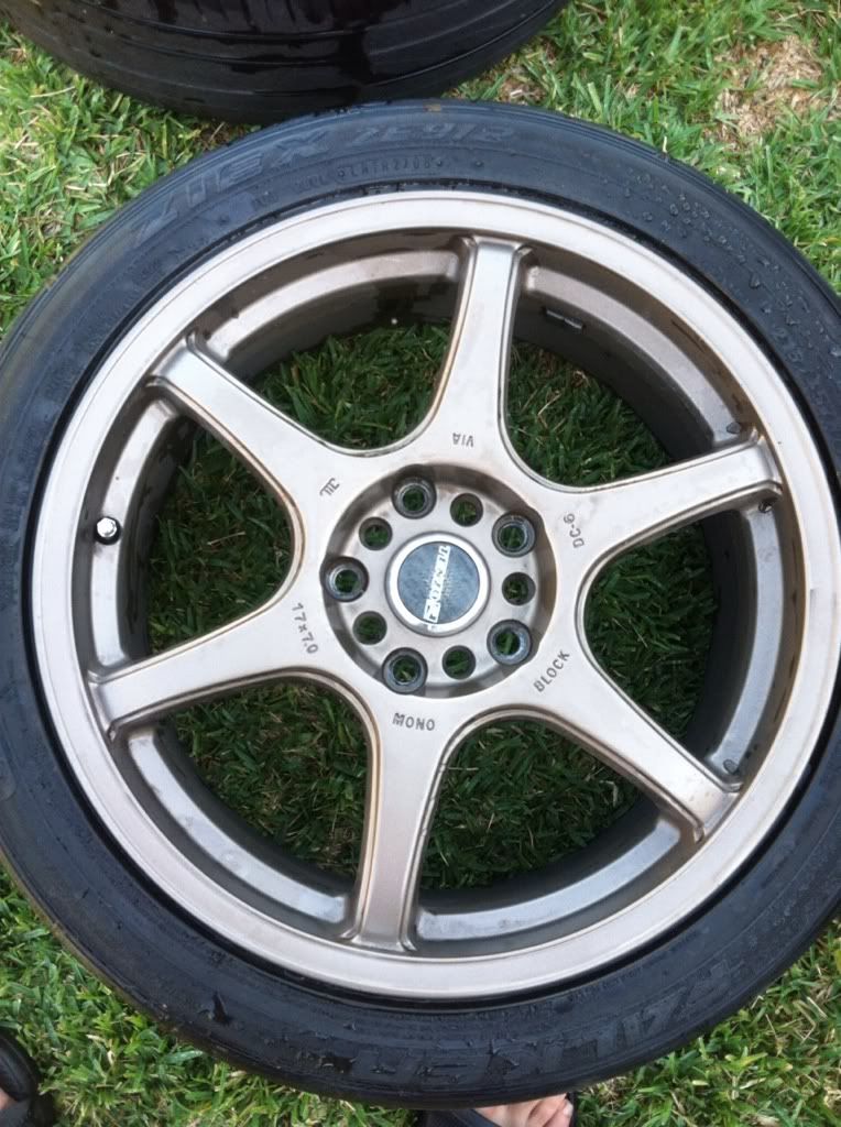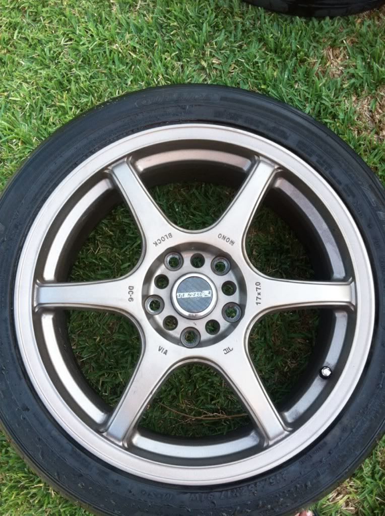 Posting these for a friend. They are 17 in Tenzo R DC-6. No curb rash or dents. Have tires but they are bald. Lug pattern is 5x100/5x114 with an offset of 42.