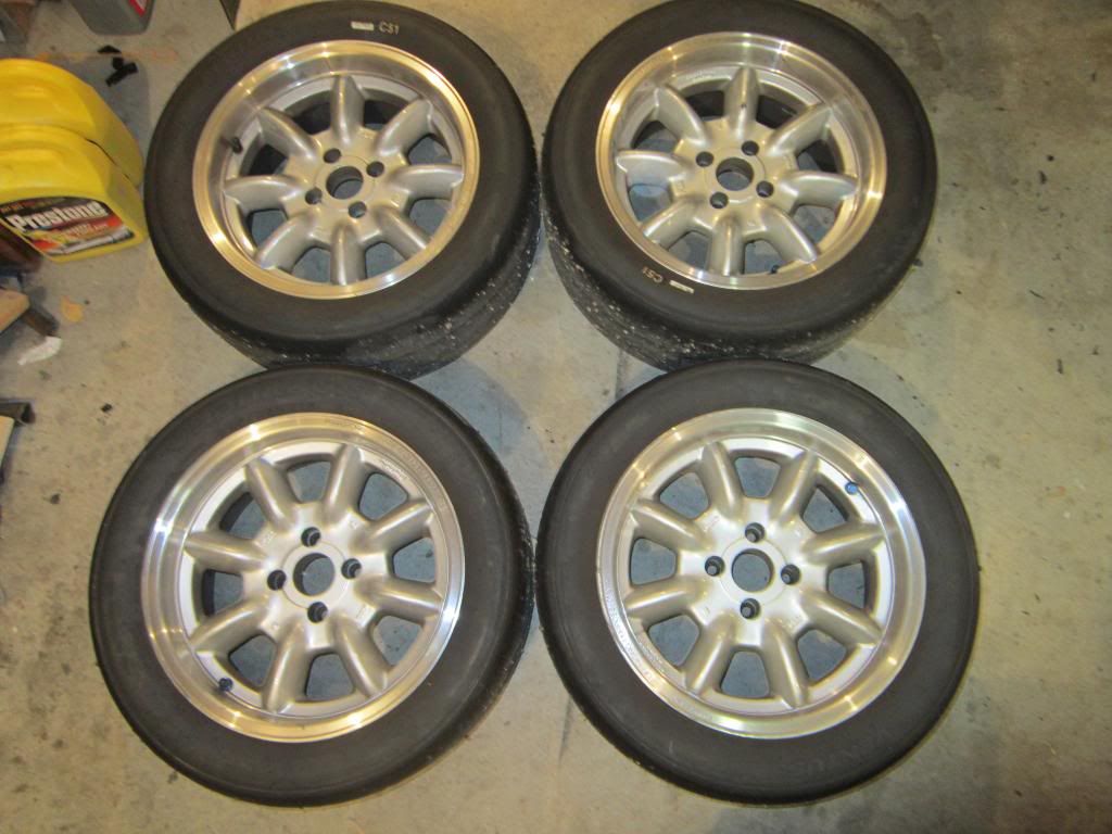 The wheels currently have Hankook slicks on them. Could get one more track day with them. Can email more pics if needed. Thanks for looking.