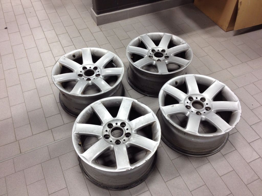 Four style 44's in a square setup 17x8 et47. Some curbage and paint is so-so. Good fitment for 5lug e30's with the 47 offset. $150 OBO