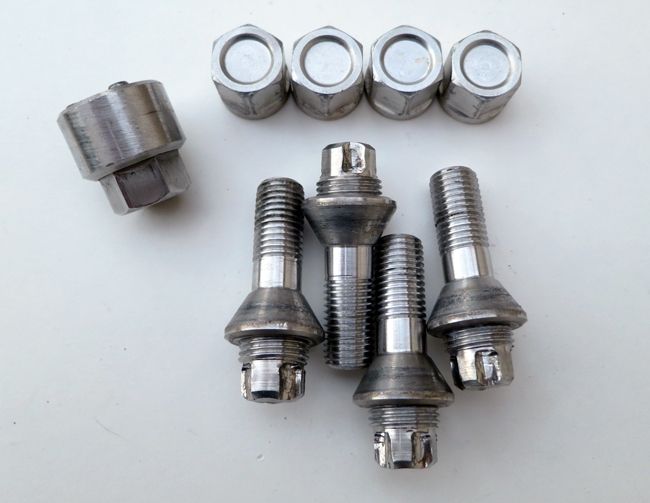 Complete Bavauto wheel lock set with caps which give the appearance of normal lugs. Comes in original packaging with instruction guide/ info for ordering extra parts, ie. wrench, caps.