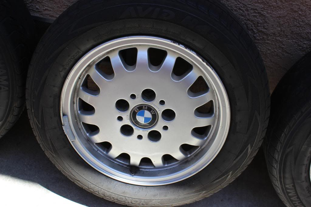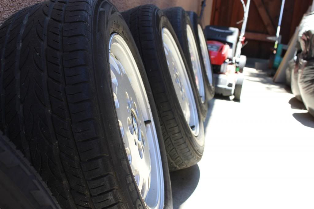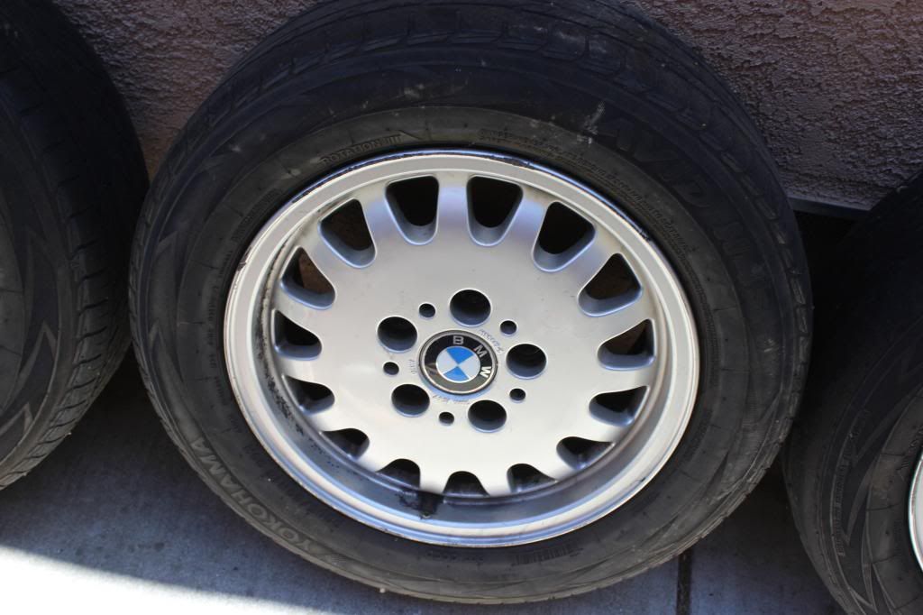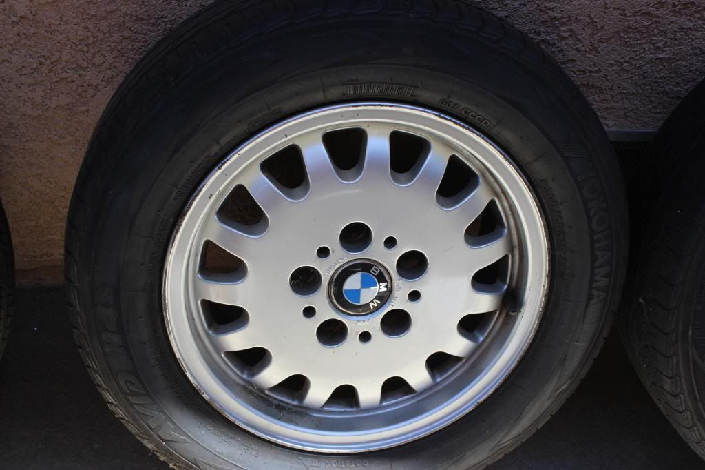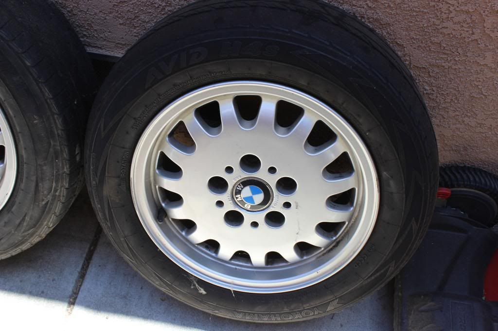 Up for sale is a set of e36 15" bottle caps. Two tires have decent tread, one tire has OK tread, and the other tire has wear.