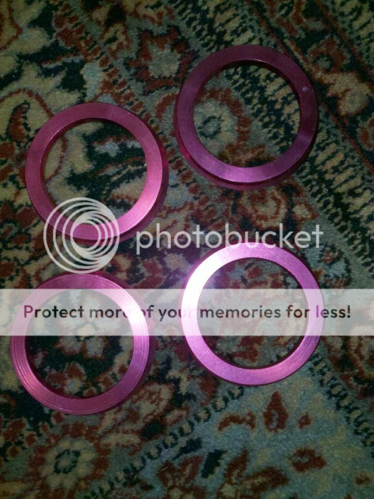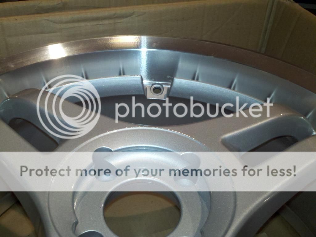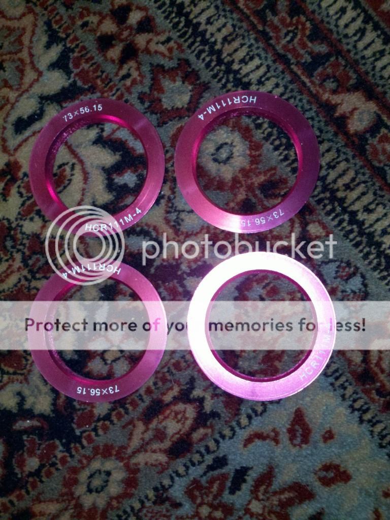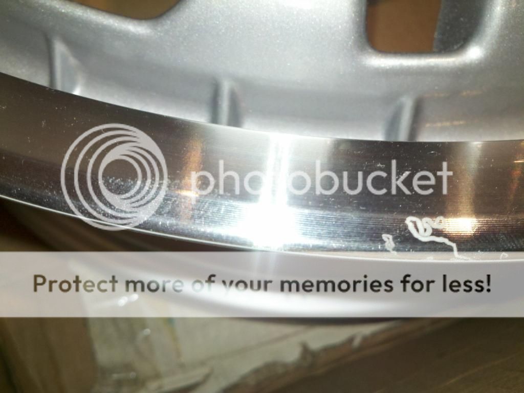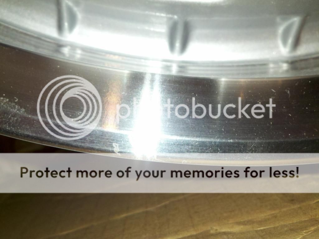 I'm not sure what the little tiny marks are around the lip but they are not scratches. I also am not sure what the sticker means by reverse rim. The centric rings are for a Honda. They are a little less than 24lbs each. Sorry for the bad lighting.
