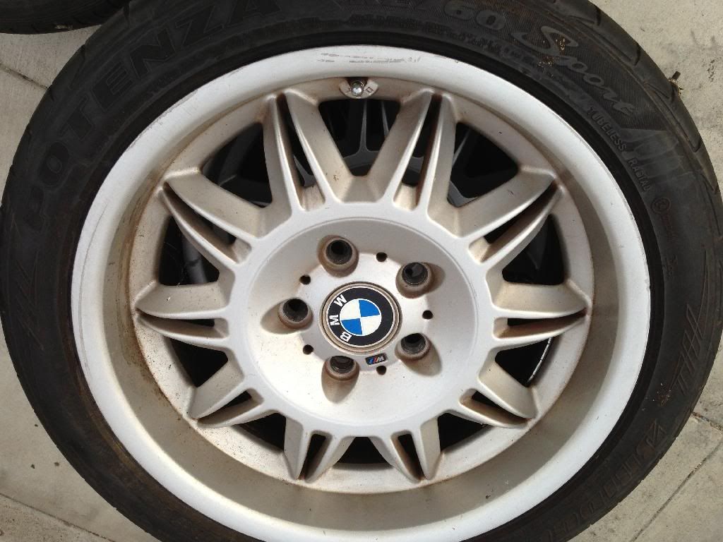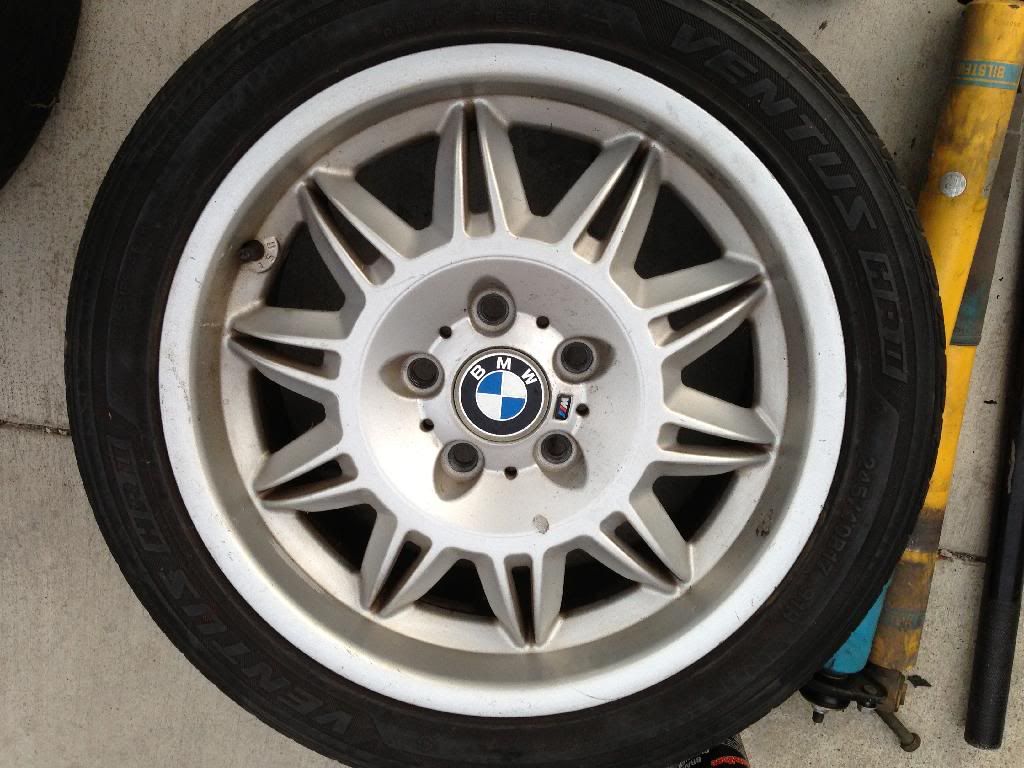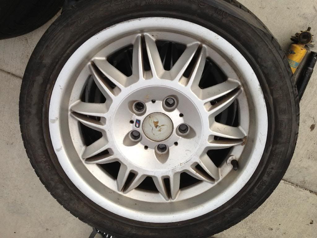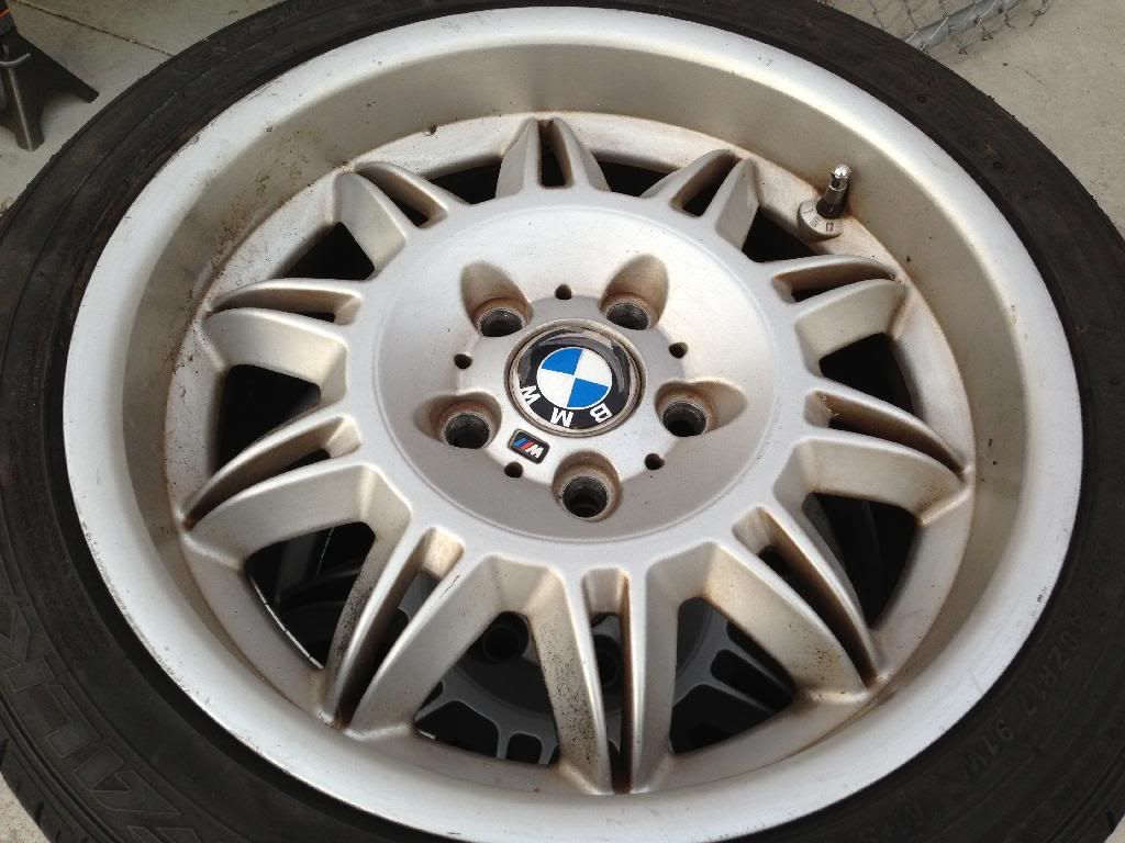BMW BMW E36 M3 Wheels. They are Double Spoke 2's. The DS2 is a 17" wheel. The fronts are 7.5" wide. The rear are 8.5" wide, Factory Size. Some curb rash, might have a few lite scratches on them, all four rims are straight need new tires and one wheel has a little chunk chipped off.